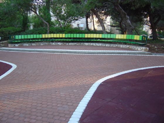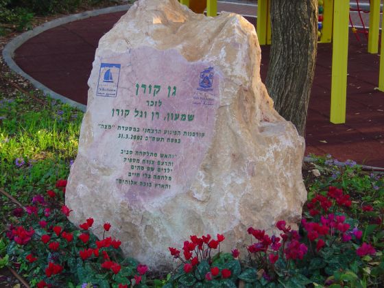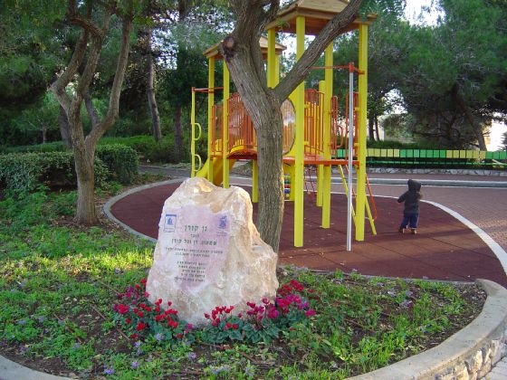 על האנדרטה בפתחו של גן המשחקים נכתב קטע שנלקח משיר שכתב תלמיד בן מחזור של רן קורן: