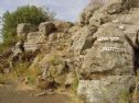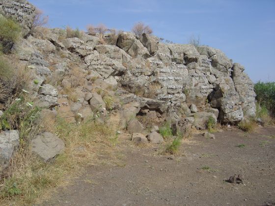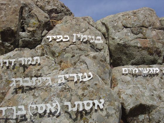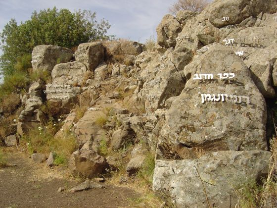 "בעמדך במקום הזה ופניך אל העיר גמלא אשר מעבר לים הכנרת טריכי, זכור את ראשוני מתיישבי רמת הגולן אשר חידשו את הישוב היהודי בו ונתנו נפשם למען שלום ישראל"