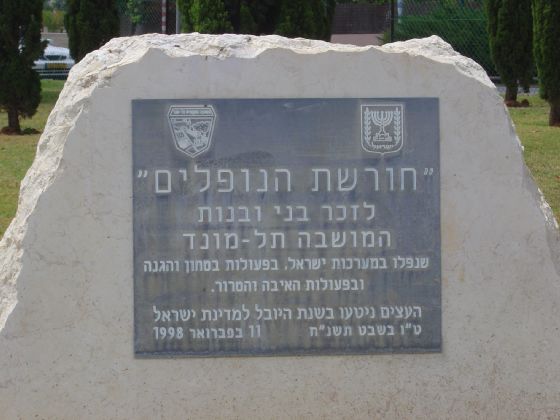 ליד בית יד לבנים בתל מונד בחורשה שניטעה במקום הוקמה אנדרטה לזכרם של בני תל מונד אשר נפלו במהלך שירותם הצבאי והבטחוני ולזכר חללי הטרור של הישוב.