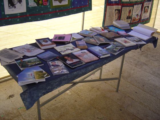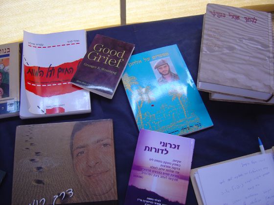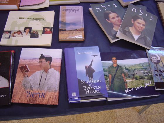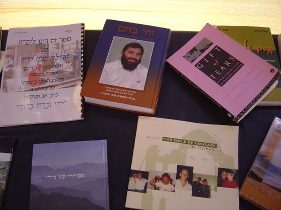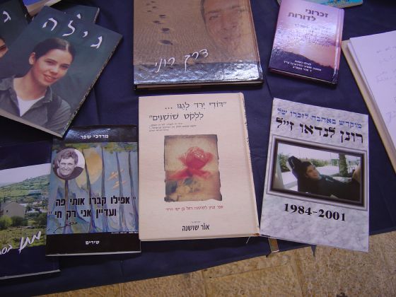 בסוכה מונחים לתצוגה ספרים רבים אשר הובאו על ידי המשפחות, ספרים המנציחים בצורות שונות את החללים. בין הספרים אפשר למצוא גם לא מעט דיסקים של שירים וסרטים אשר הוכנו על ידי המשפחות.
