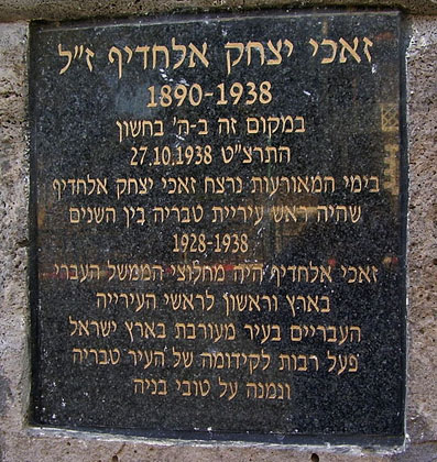 ביום עשרים ושבעה באוקטובר 1938 יצא ראש עיריית טבריה יצחק זאכי אל חדיף בן 46 עם סגנו הערבי מבניין העירייה, הימים היו ימי המאורעות בארץ, כעבור דקות אחדות ירה בו ערבי מבני המקום יריות אחדות. זאכי הובא לבית-חולים במצב קשה, וכעבור יומיים, נפטר מפצעיו.
