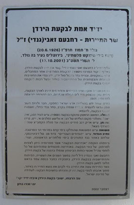 בבוקר יום רביעי השבעה עשר באוקטובר 2001 בהיותו במלון היאט בירושלים נרצח אלוף (מיל') רחבעם זאבי (גנדי), שר התיירות וחבר הכנסת, ממנהיגי הימין הישראלי, איש ארץ-ישראל השלמה ומגדולי אוהביה, על-ידי מתנקשים ערבים.
