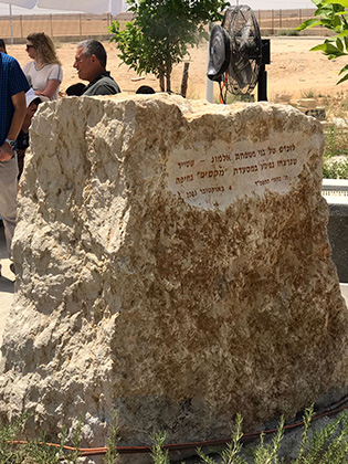 אלוף (מיל.) דורון אלמוג, חתן פרס ישראל, וקרוב משפחתם של הרוגי הפיגוע בני משפחת אלמוג, הקים את כפר "עלה נגב" כחלק מפרוייקט חייו למען בנו האוטיסט ערן, בכפר הוקמה אנדרטה לזכרם של בני משפחתו שנהרגו בפיגוע, טקס גילוי האנדרטה בעלה נגב ביום 15 לאוגוסט 2017.
