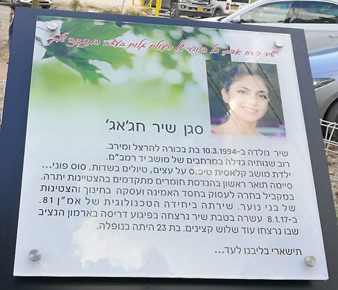 שיר חג’אג’ גדלה במושב יד רמב"ם רוב שנותיה , לזכרה נטעו במושב שדרת עצים. החיילים שבתמונה היו ילדים בגן של אמה של שיר, מירב עד גיל 3