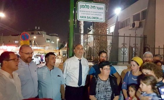 בתום דברי ראש העיר הוסר הלוט מעל שלט רחוב "משעול חיה סלומון" הסמוך לבית הספר, המחבר בין רח' קפלן לרח' הכרמל בעיר לוד