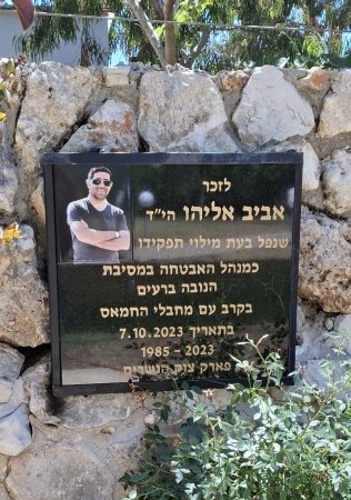 אביב מונצח בלוח זיכרון במתחם צוק הנשרים במעיליא
