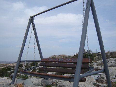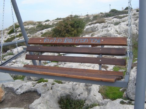 On the path leading from Peduel to Dir-Kalaa (The monastery fortress - a Byzantine fortress, one of the beautiful that remained in Israel), a place that was called by Arik Sharon “Israel’s porch”, from that place on a normal day one can see the Mediterranean sea from Hadera to Ashkelon. There his friends placed a swing in his memory.