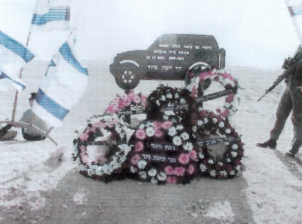 A big commemoration was erected at the place of attack, a Jeep shaped monument made from steel. Not long after Arab metal thieves stole the monument, the family rebuild the monument from stone at the same place.